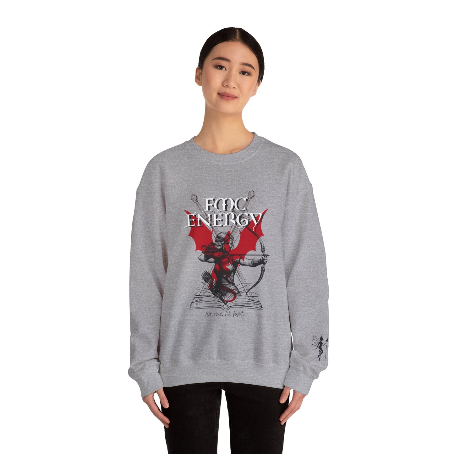 Crewneck Sweatshirt — "Ego Energy" Red Winged Devil Graphic